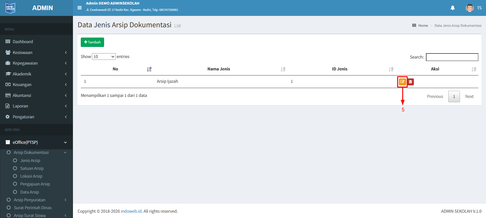5. Apabila ingin mengubah nama jenis arsip silahkan klik tombol Edit.