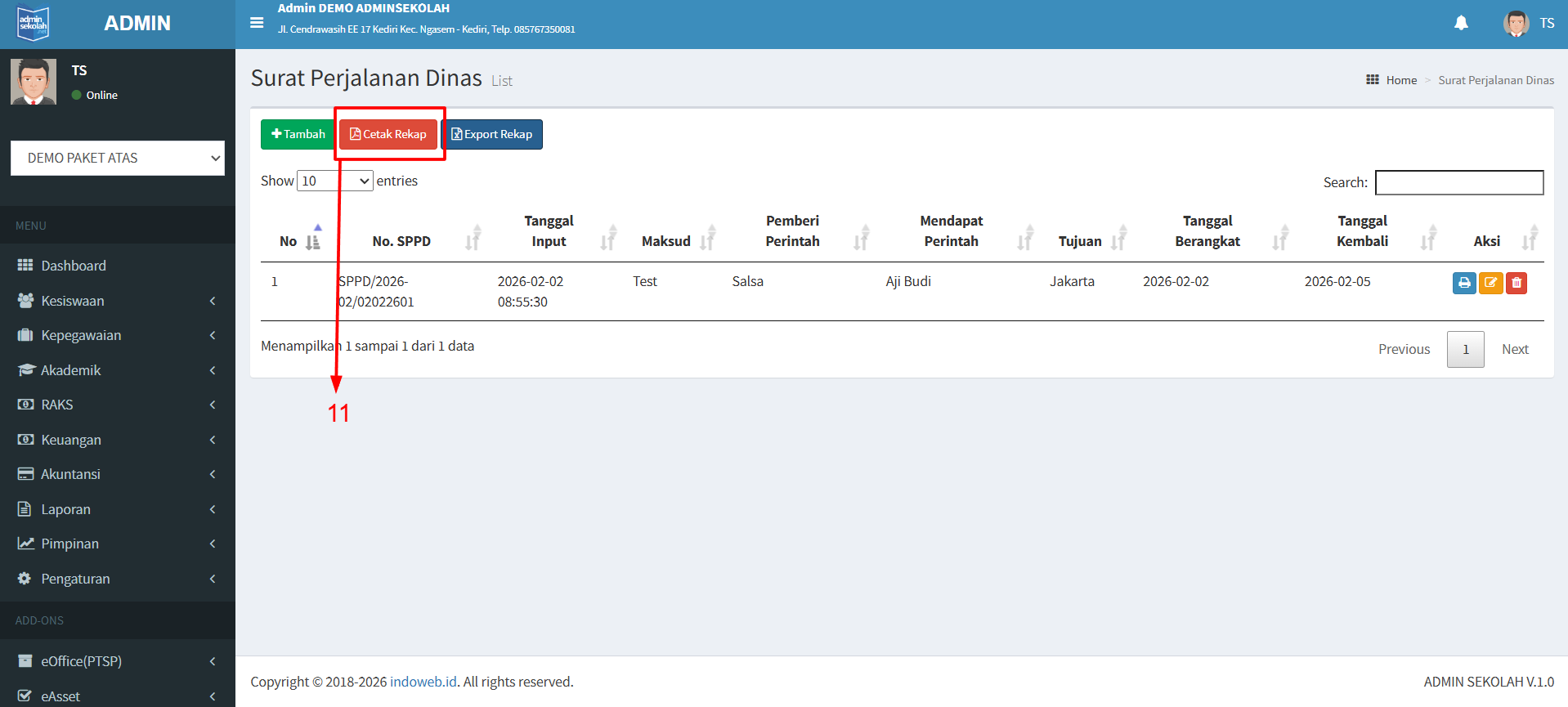 11.Klik Cetak Rekap untuk download pdf semua rekap surat.