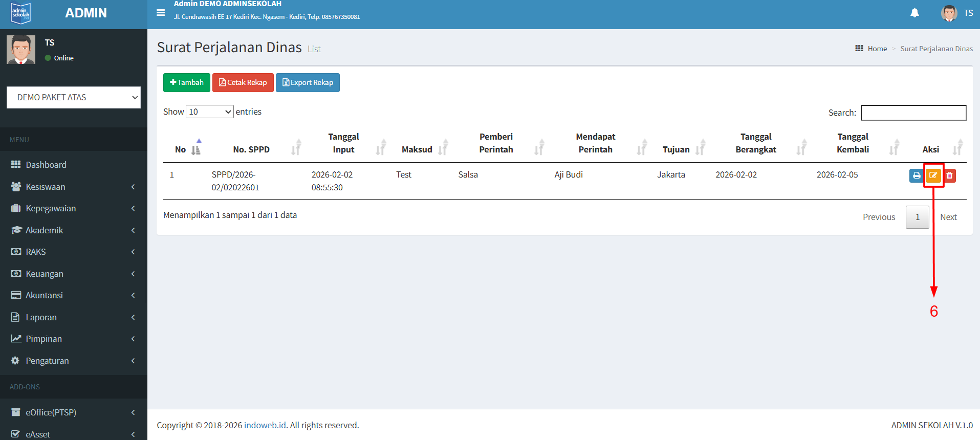 5. Klik Edit untuk mengubah data yang sudah selesai di input.