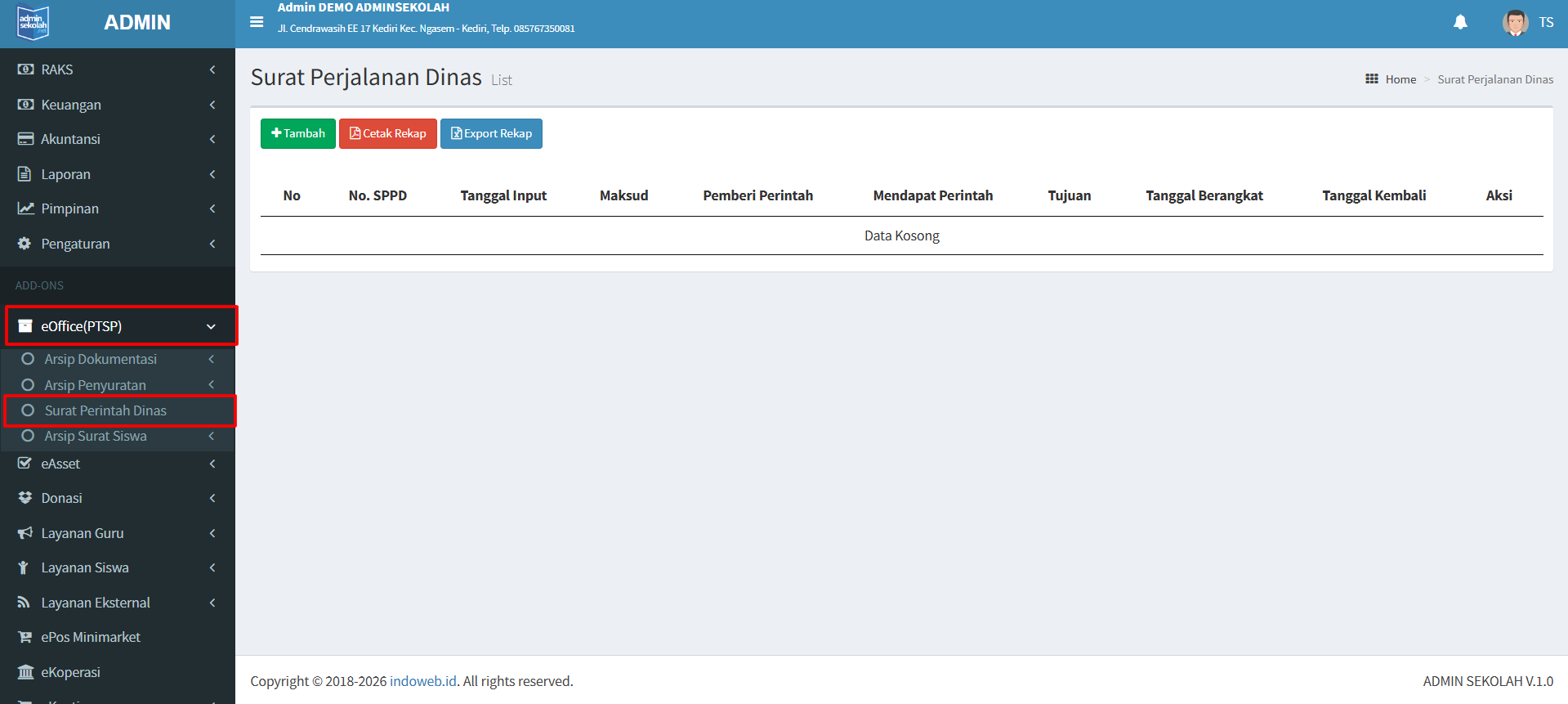 Setelah menambah Surat Masuk dan Surat Keluar maka tutorial selanjutnya adalah Surat Perintah Dinas. Berikut Tutorial menu Surat Perintah Dinas pada Add-Ons PTSP :