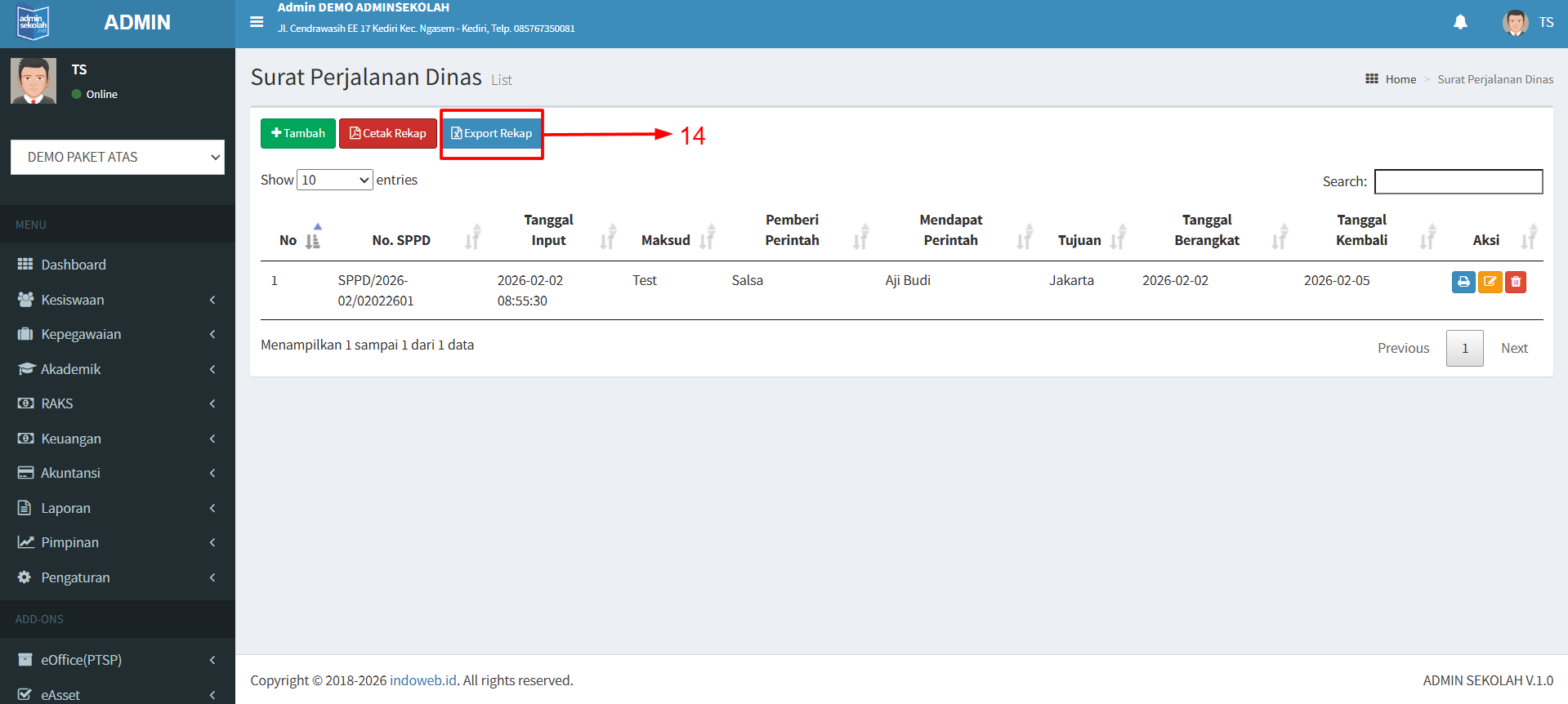 14.Klik Export Rekap untuk download excel semua rekap surat.